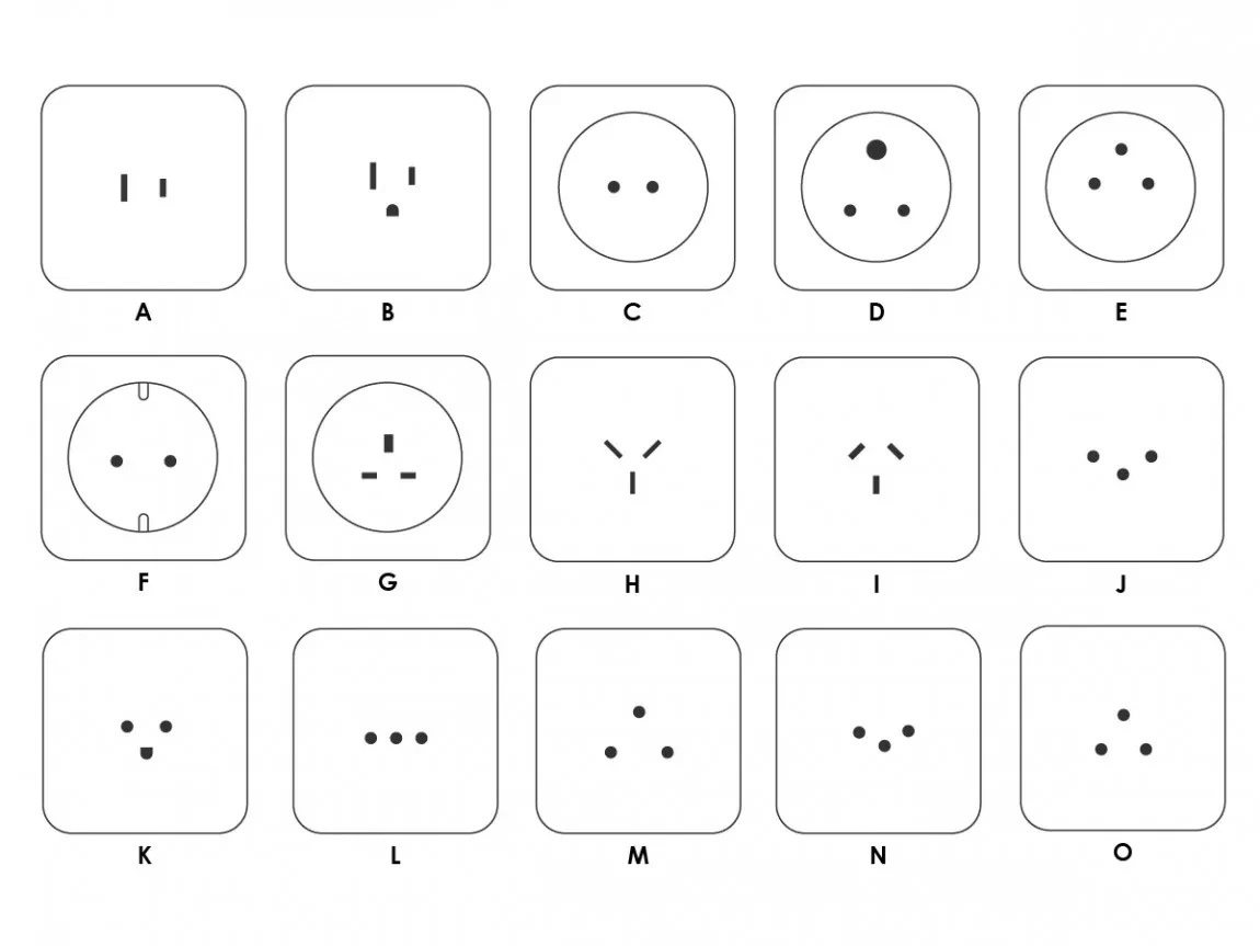 🔌 一、世界常見插頭類型(A~O)