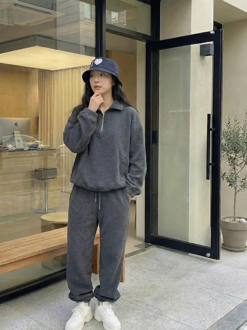 正韓製舒適厚款拉鍊抽繩上衣/縮口長褲-KK102