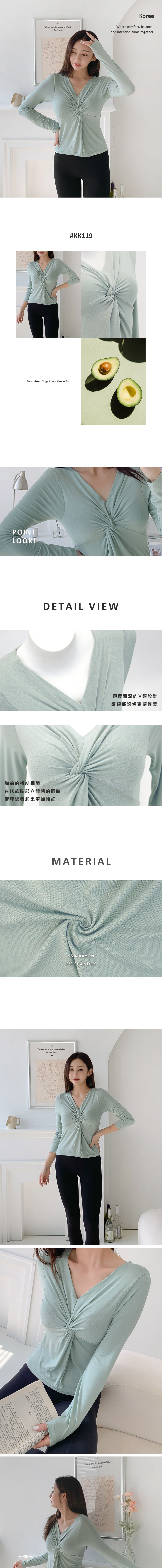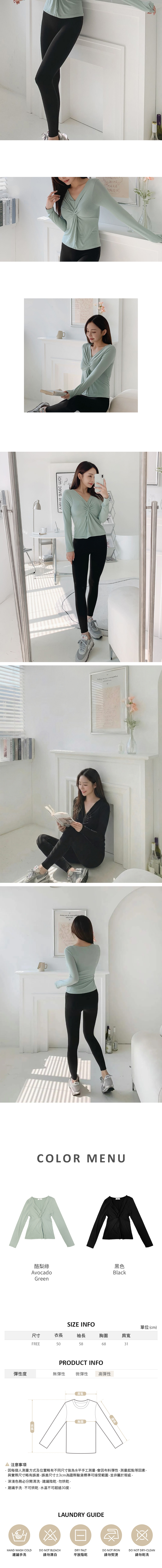 適度開深的 V 領設計,讓頸部線條更顯優美, 胸前的扭結細節增添了 可愛又迷人的氣息,是一款很有魅力的上衣。 材質輕盈柔軟、彈性佳, 觸感舒適,穿起來非常自在。