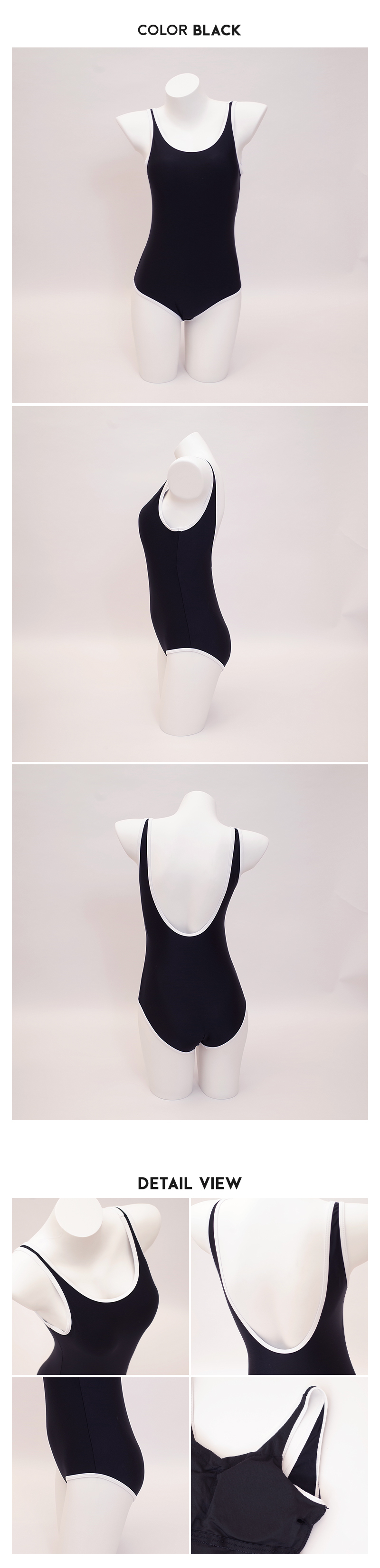 in stock-black with white trim, one-piece, slimming, beautiful back swimsuit-240