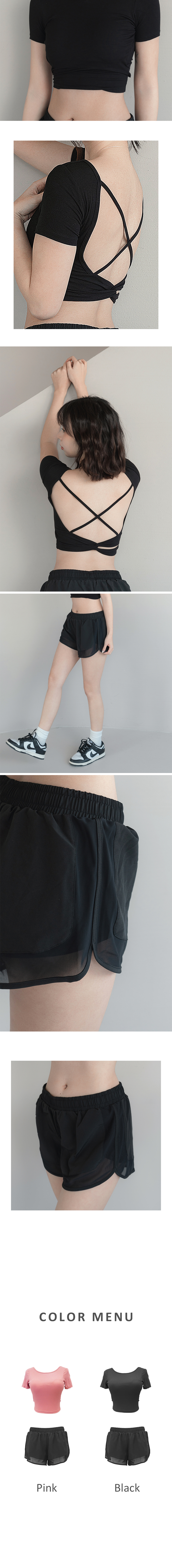 Built-in chest pad short sleeve + trousers sports yoga suit