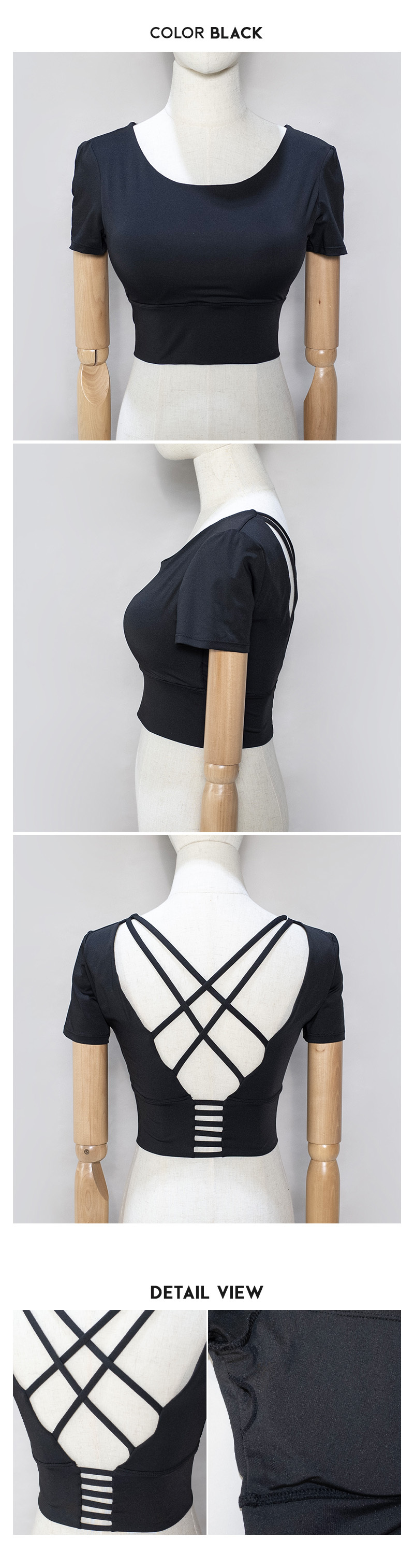Built-in chest pad short sleeve + trousers sports yoga suit -B1004 Black