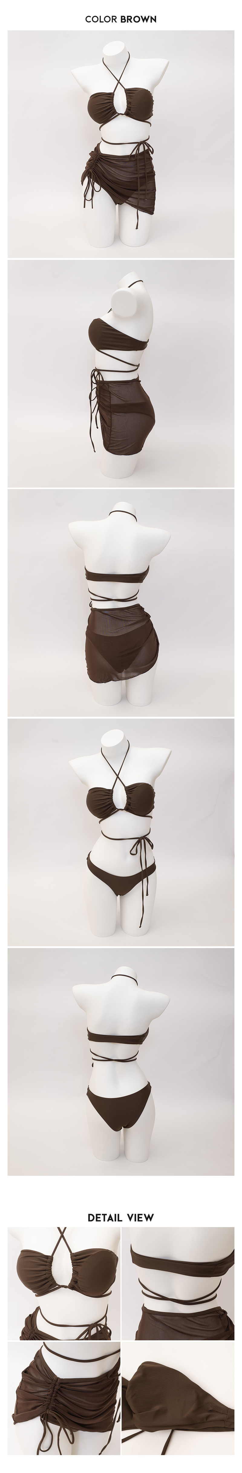 Spot Europe and the United States 3-piece T-shaped bikini - brown - 229