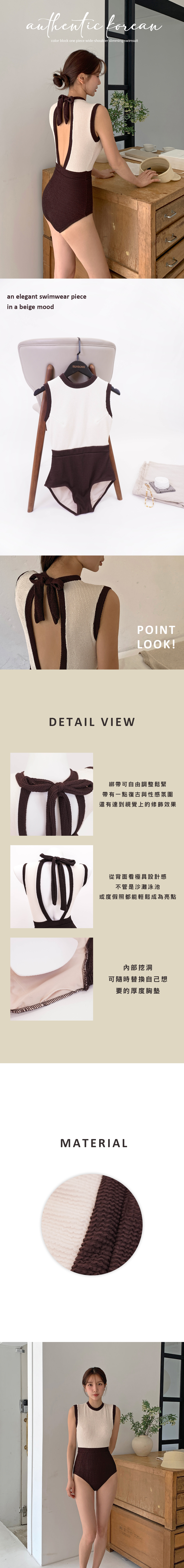 authentic korean color block one piece wide shoulder slimming swimsuit-KSS50