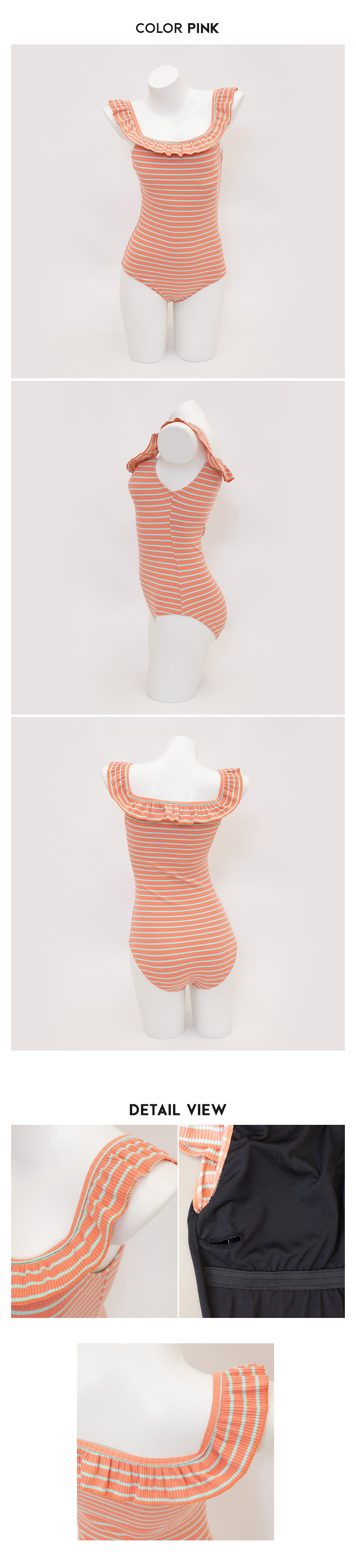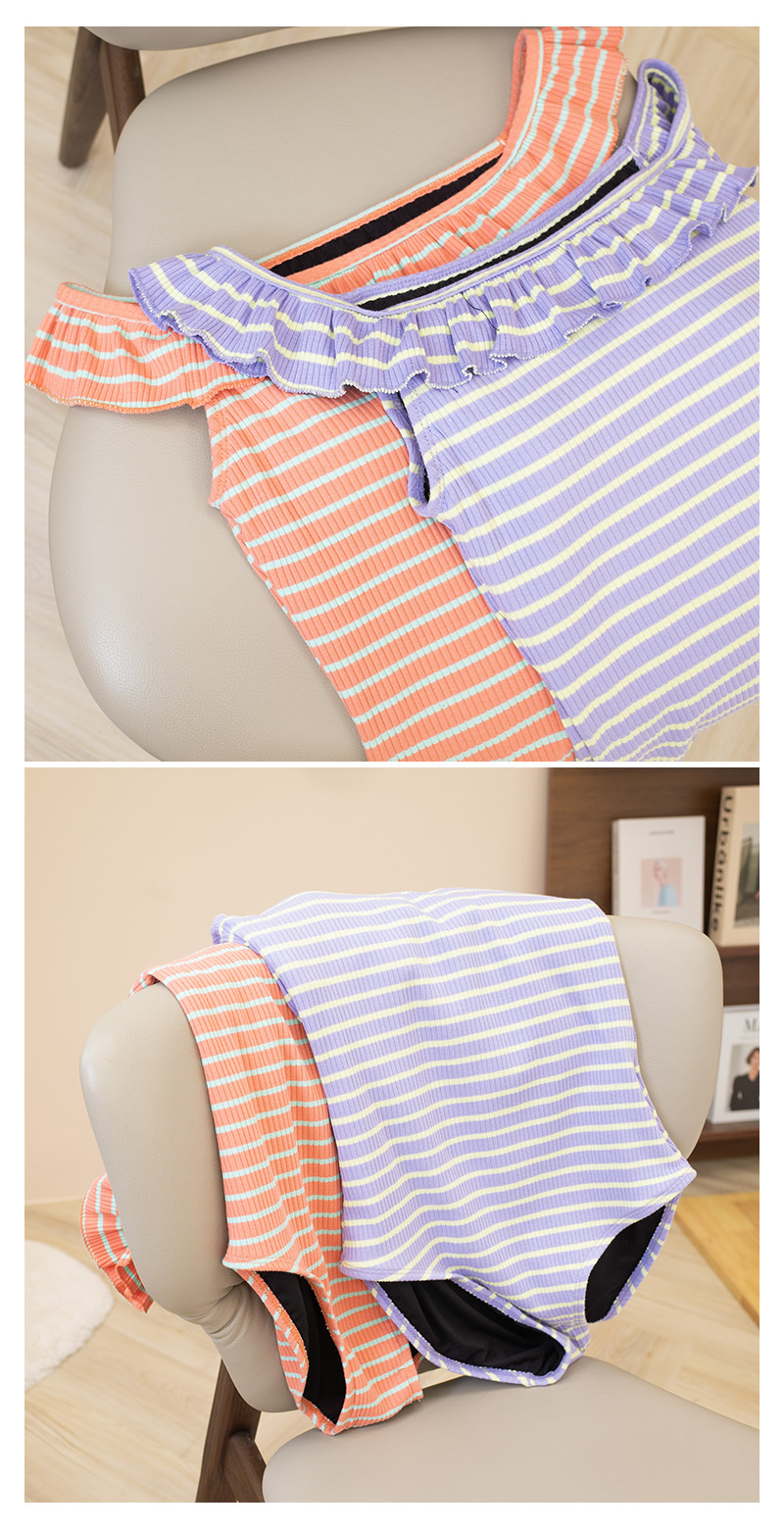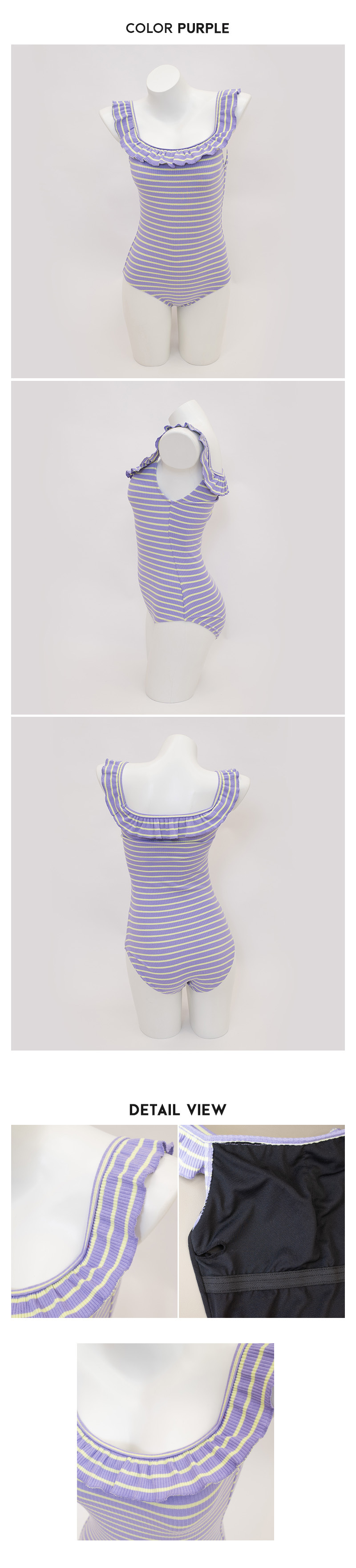 in-stock authentic korean-made stylish flat-neck striped one-piece swimsuit - two colors -KSS55