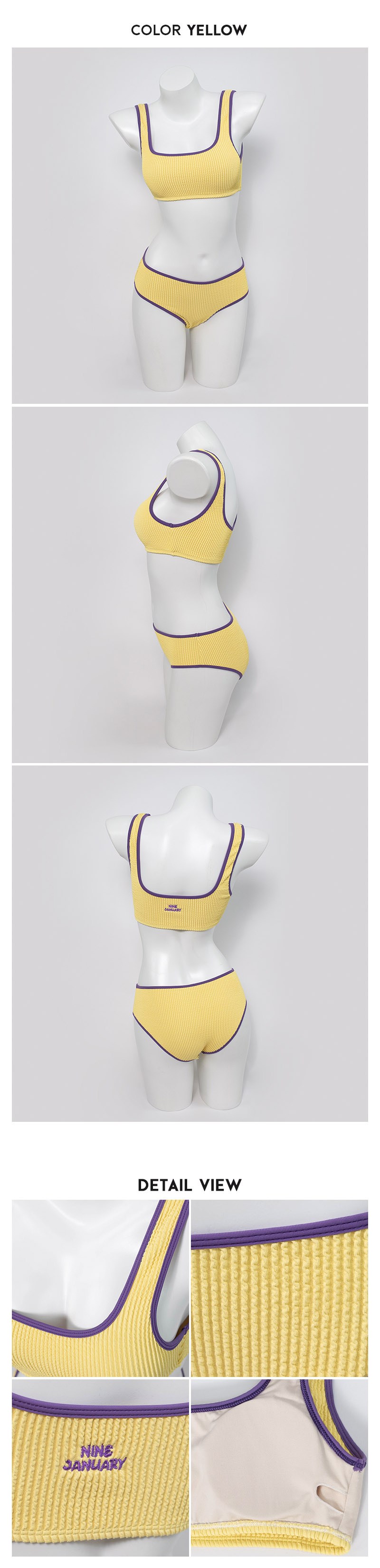 in-stock korean style high-waisted swimsuit with rolled edges - KSS41 - Yellow