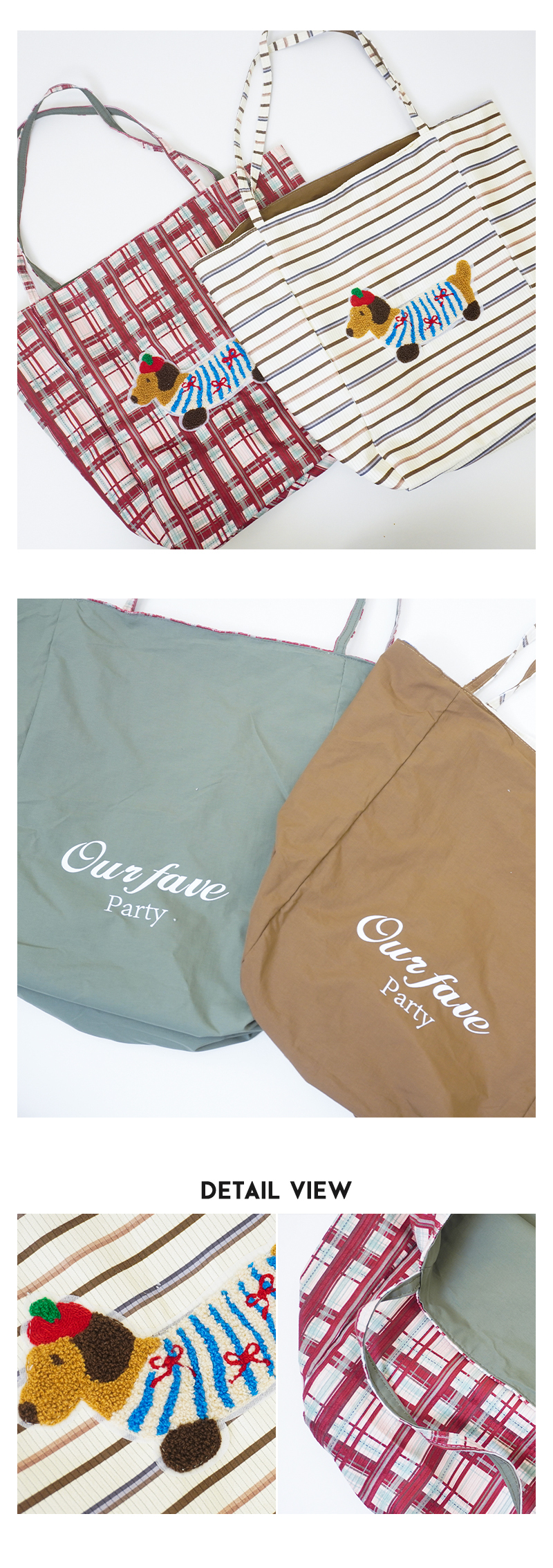 fluffy dachshund large-capacity bag, plaid/striped -99