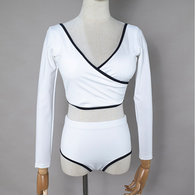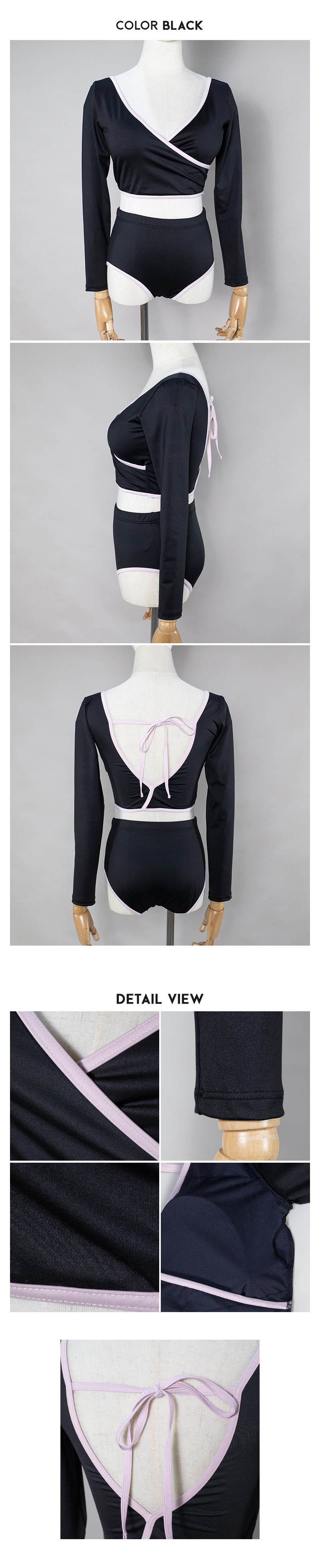 Spot Korea-made long-sleeved high-waisted swimsuit-K2254 -black/white/dark blue