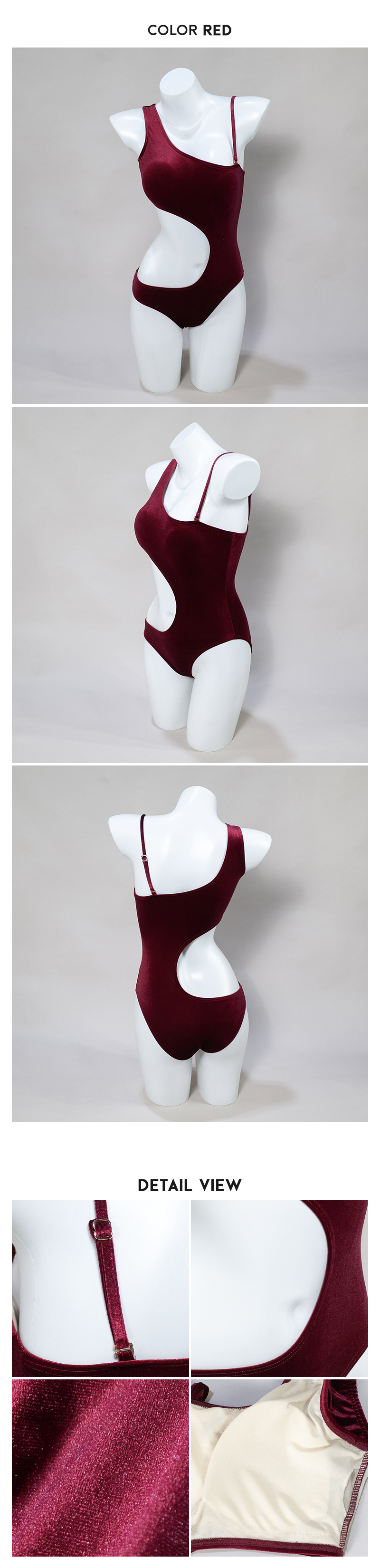 In stock Korean-made 2-color suede one-shoulder sexy one-piece swimsuit -K2208