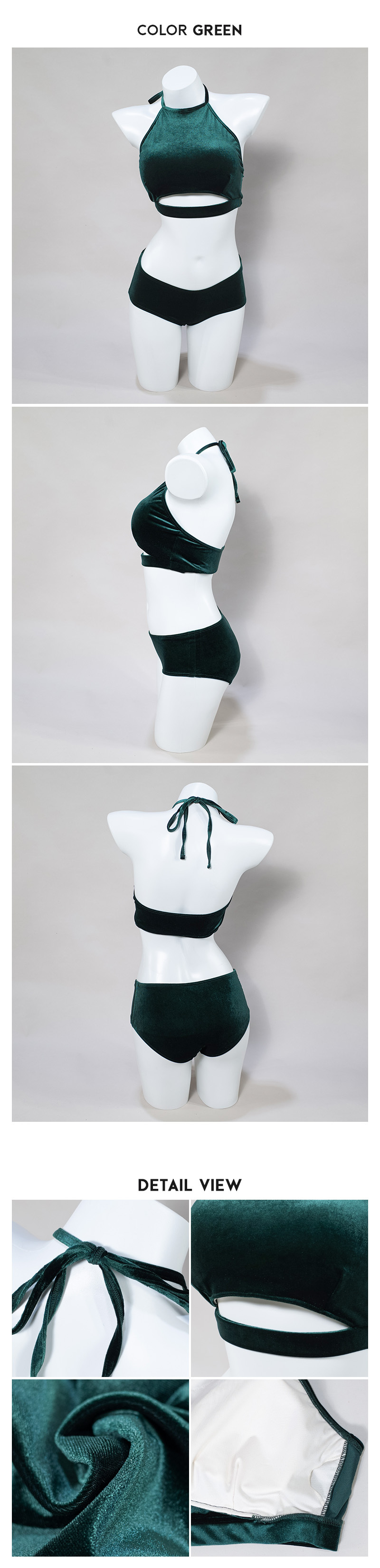 In stock Korean-made 2-color suede mid-waist swimsuit -K2251