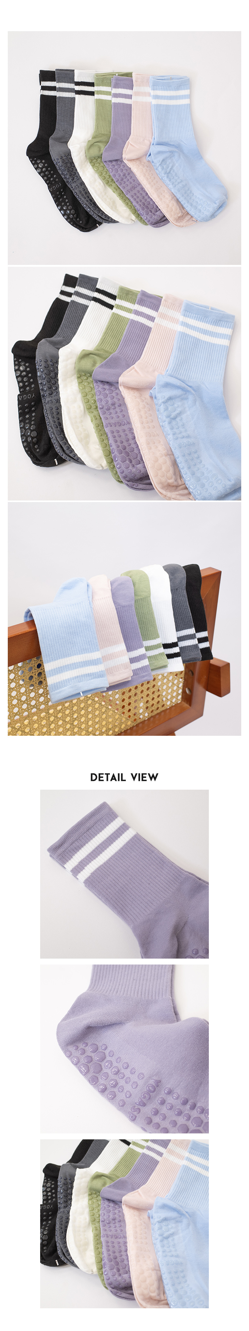in -stock multicolored pilates yoga anti-slip striped mid-calf socks - SK08