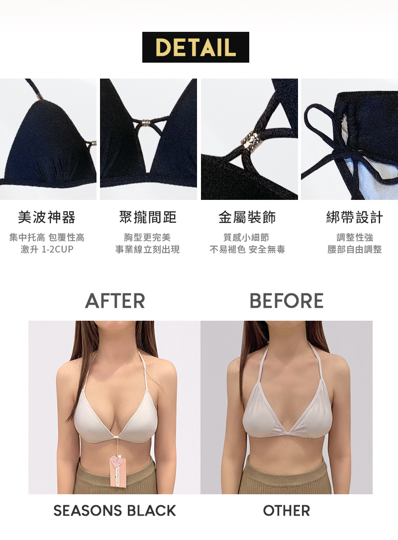 一體成型的內置厚胸墊,罩杯激升1-2cup