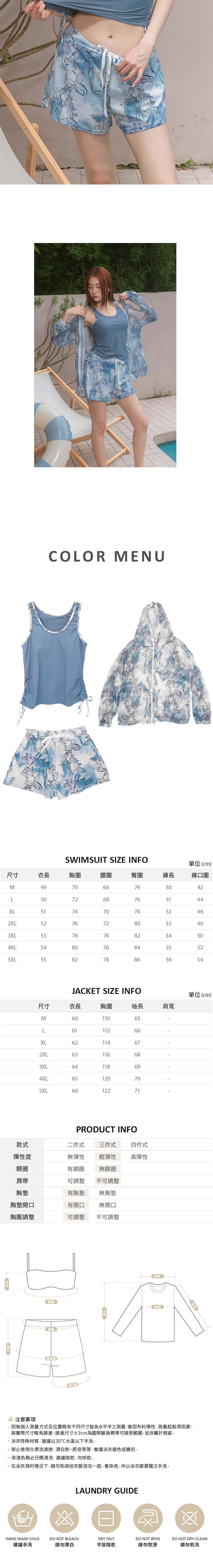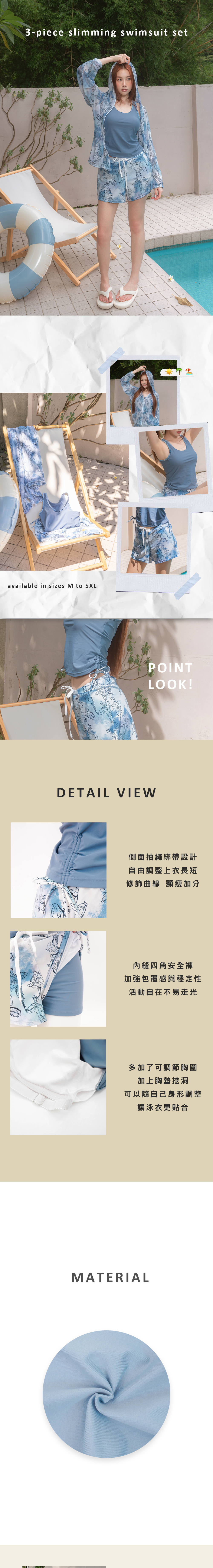 slimming 3 piece swimsuit set with cover up and boxer tankini M-5XL-703