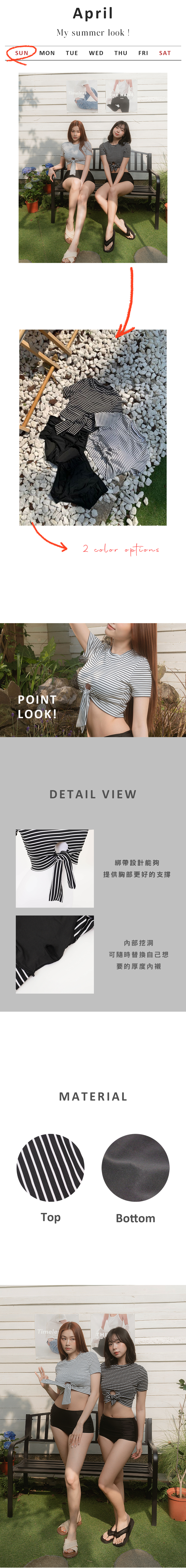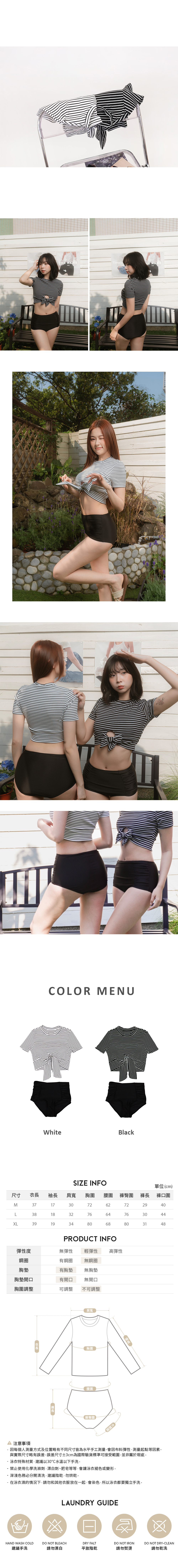 Two-tone striped figure-flattering high-waisted short-sleeve swimsuit White/Black-208