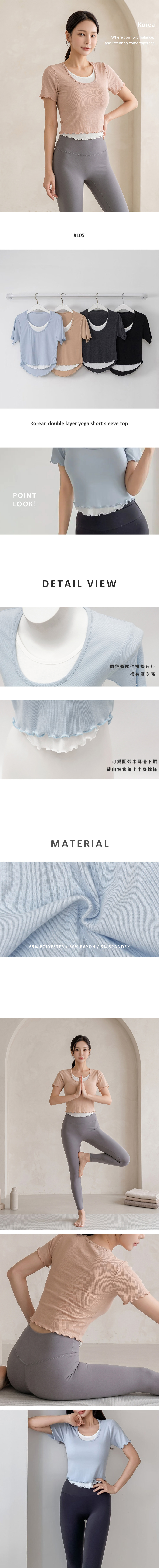 現貨韓國製3色雙色雙層瑜伽皮拉提斯短袖上衣-KK105