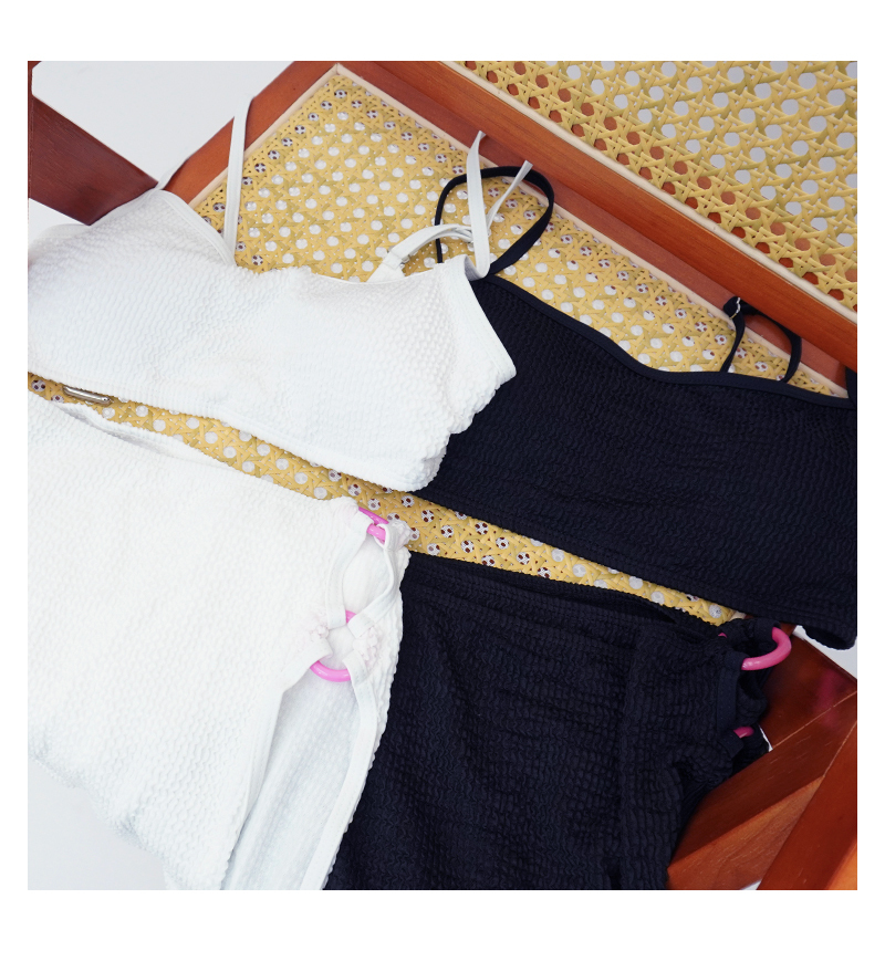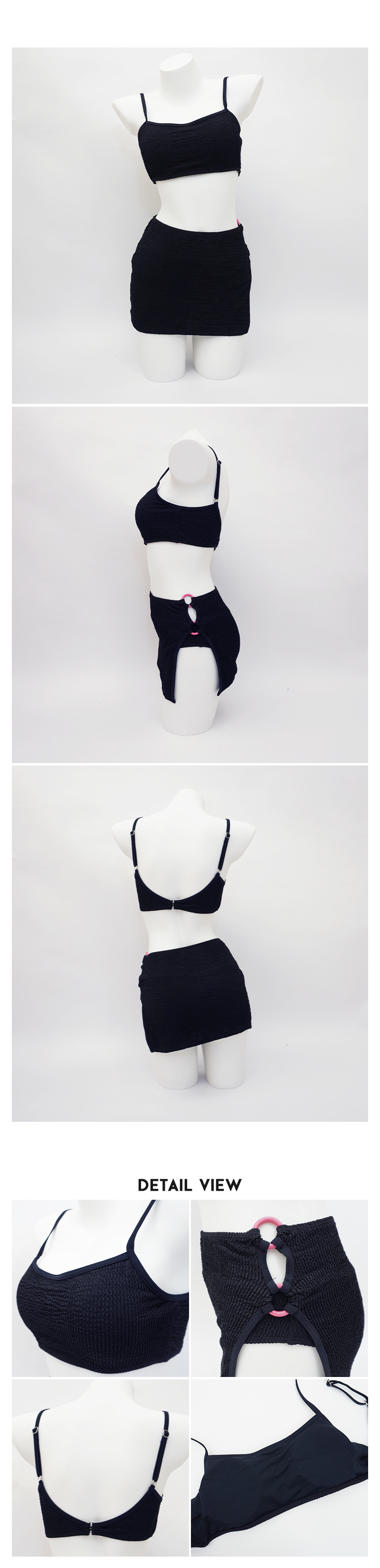現貨三件套顯瘦裙式泳衣- 黑/白-71