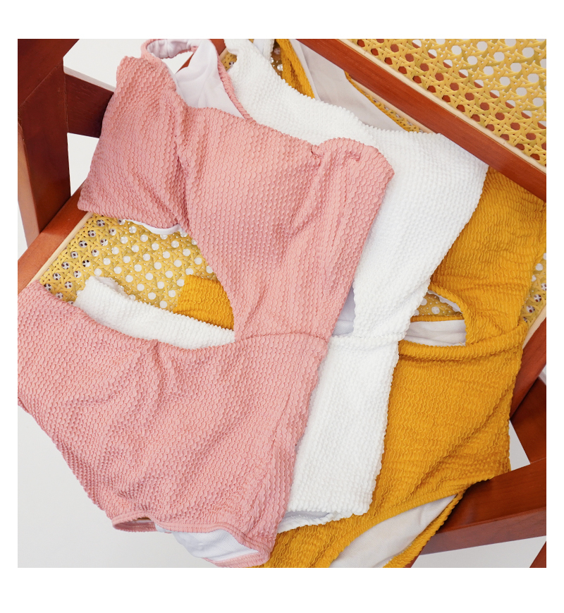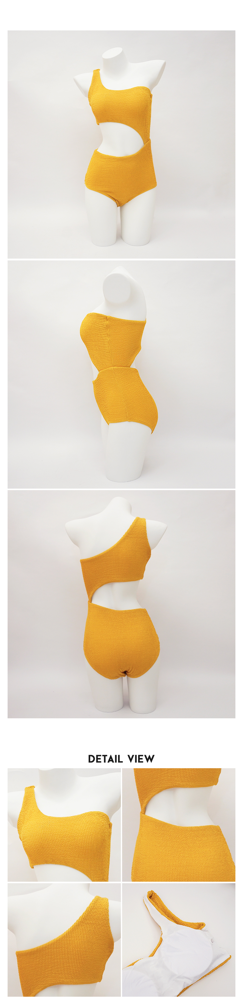 現貨壓紋單肩連身泳衣- 白/粉/黃/黑-338