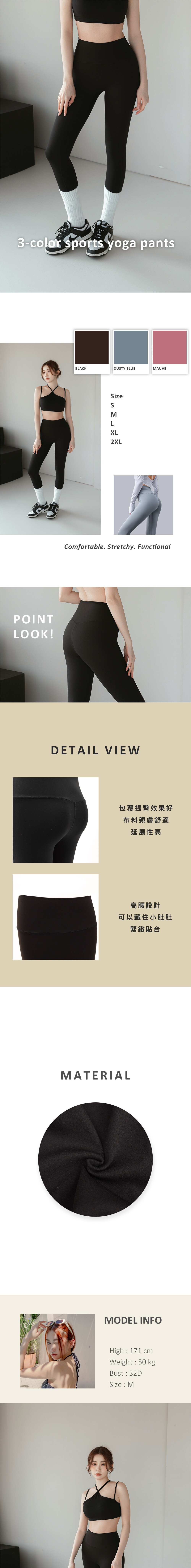 現貨3色運動瑜伽褲-B999-黑色/灰藍/蜜桃粉