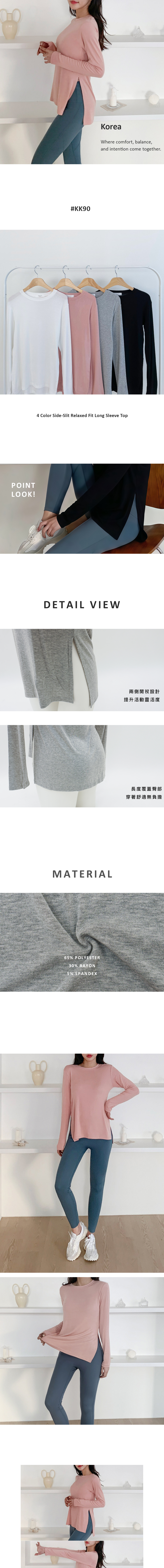 4-Color Side-Slit Relaxed Fit Long-Sleeve Top-KK90