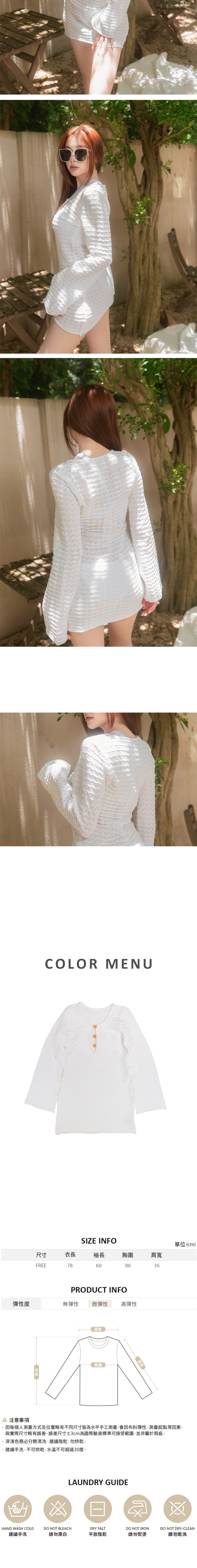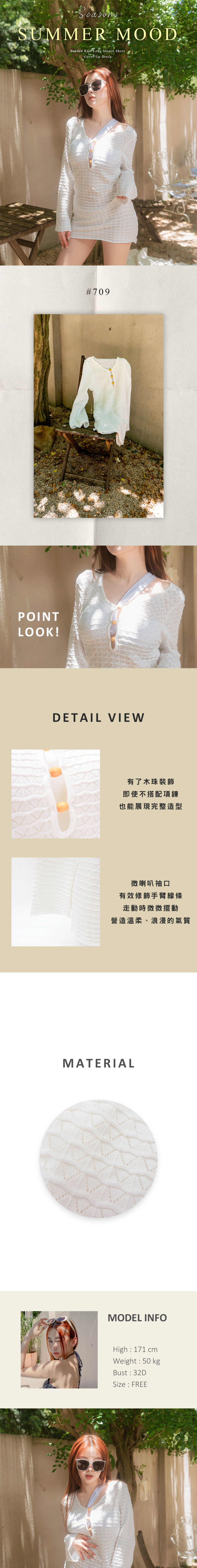 現貨 木珠針織長袖防曬短洋裝罩衫-709
