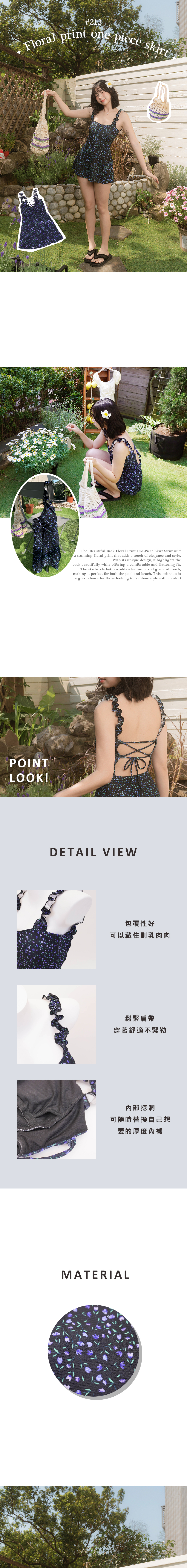 精美的印花圖案,增添了一絲優雅與時尚感。獨特的設計突顯美麗的背部線條,同時提供舒適且修身的剪裁。適合泳池或海灘度假。