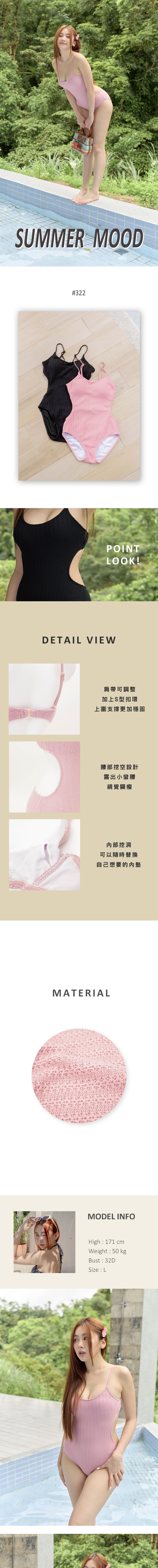 現貨 針織花紋挖腰連身泳衣-粉-322