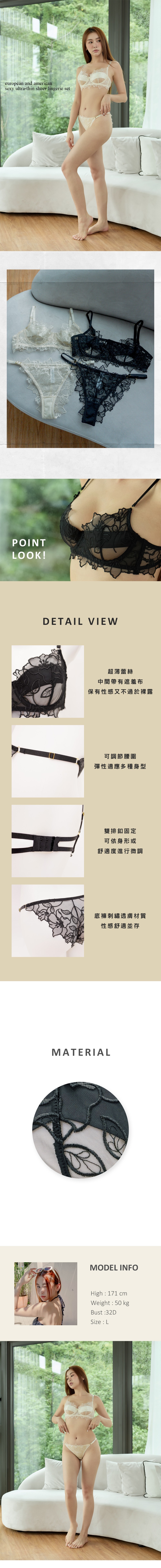 採用透視感蕾絲與超細網紗面料,重量輕盈、質地柔軟,營造若隱若現的性感氛圍。細膩設計,簡約優雅款式,輕鬆打造迷人的優雅造型!