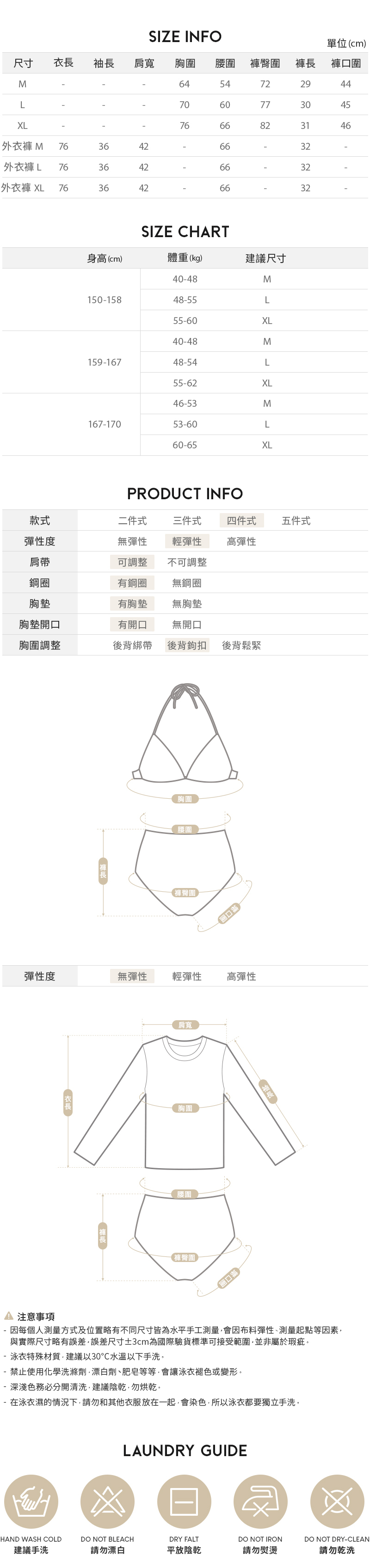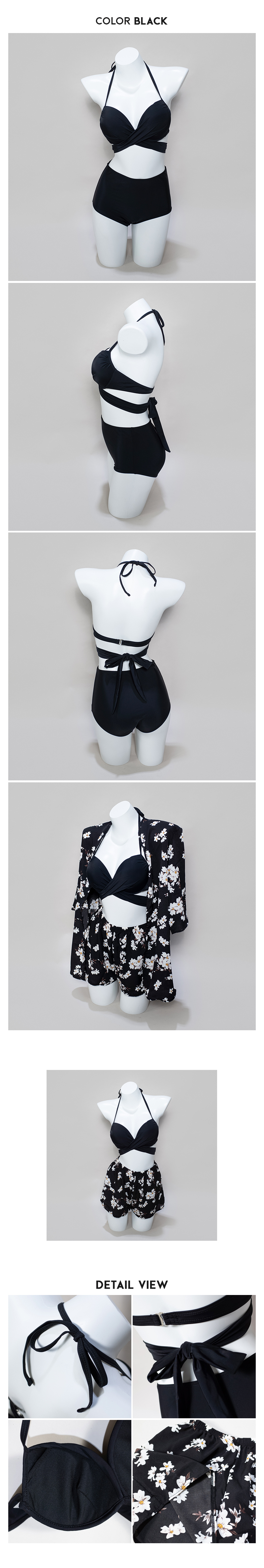 集中顯瘦四件式泳裝,泳衣集中效果好,泳褲高腰設計拉長腿部線條,顯腿長,面褲子寬鬆外設計可以修飾大腿和屁屁,顯瘦又修身,搭配超柔軟彈性面料,穿起來非常舒服,輕鬆打造迷人的優雅穿著,海邊渡假、泡溫泉必備!