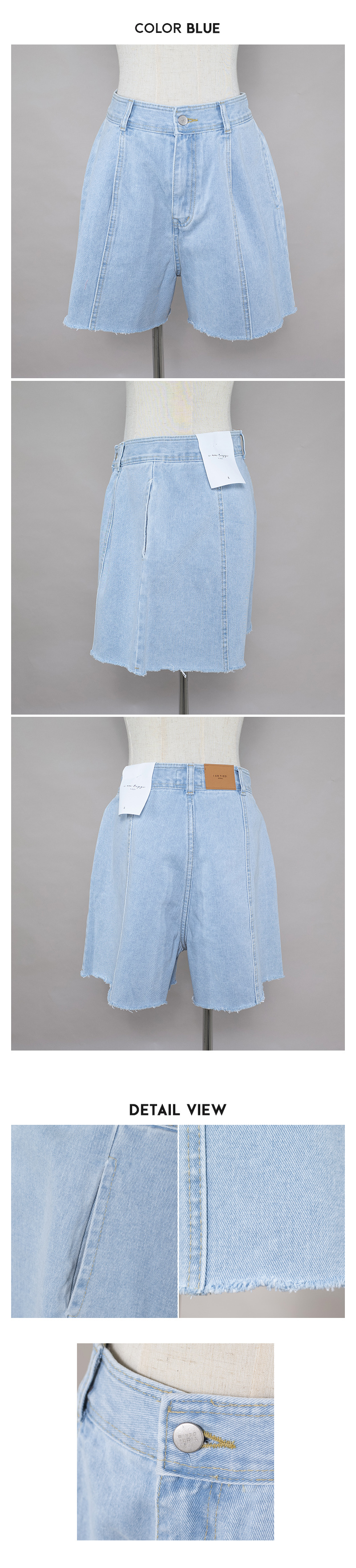 現貨正韓製褶線顯瘦牛仔短褲 藍/白 -KK51