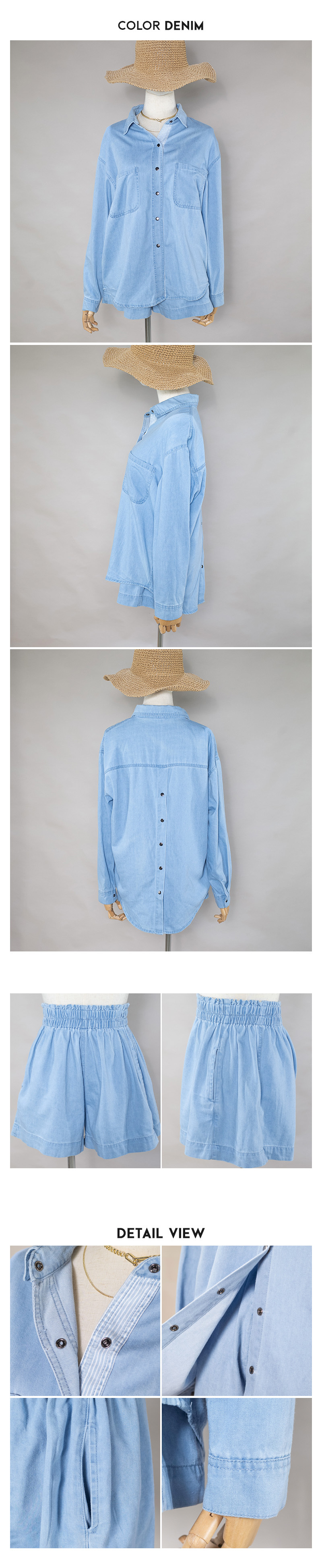 現貨正韓製牛仔套裝長袖+短褲 -KK11
