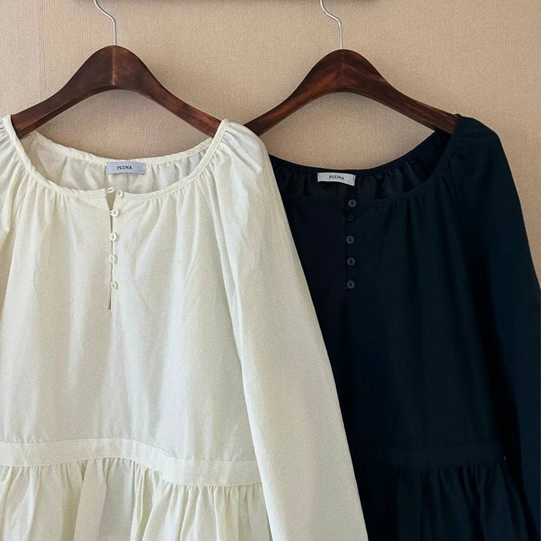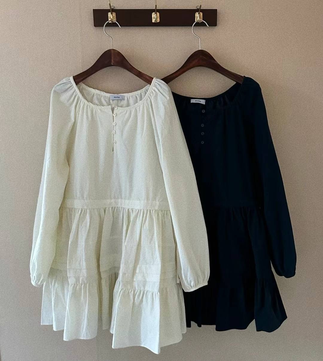 現貨正韓製長袖連身蛋糕裙短洋裝 -KK120