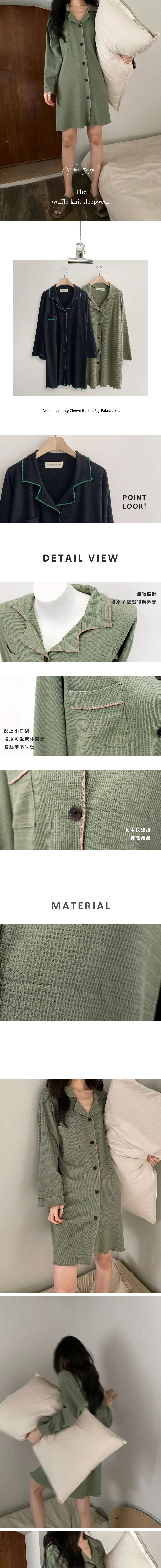 長袖連身版型搭配前開鈕扣設計,穿脫方便,兼具實穿與造型感。