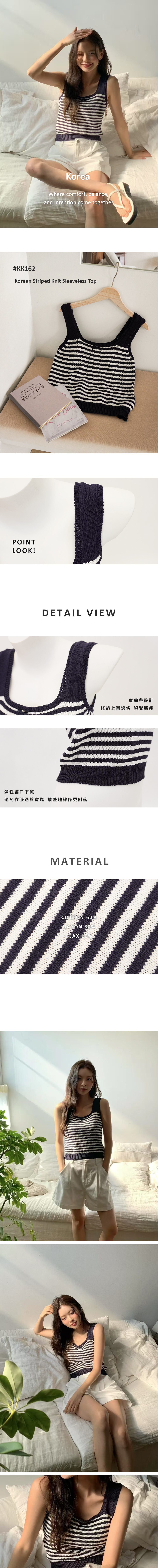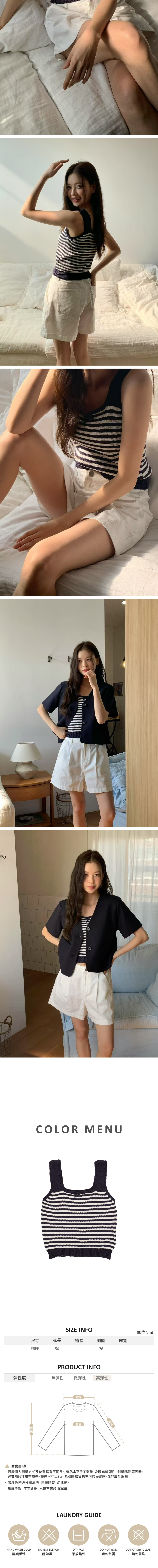 採用柔軟親膚的針織面料,穿著舒適不刺膚。經典條紋設計簡約百搭,無論單穿或作為內搭都能輕鬆打造時尚層次感。