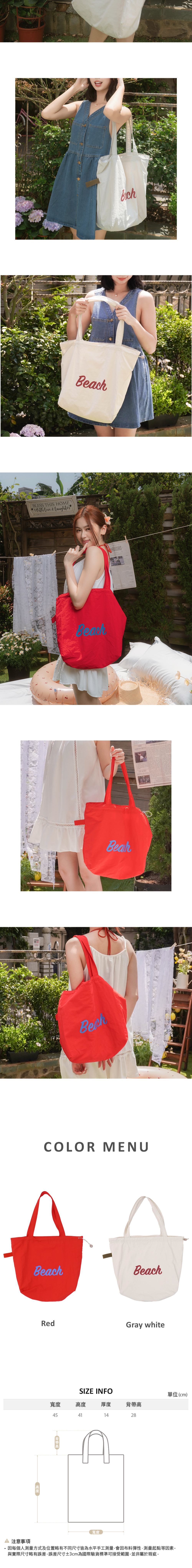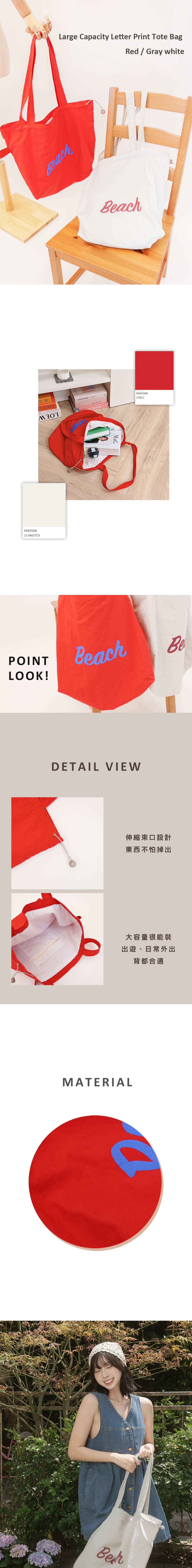 現貨大容量度假日常字母大包包 紅/灰白-810