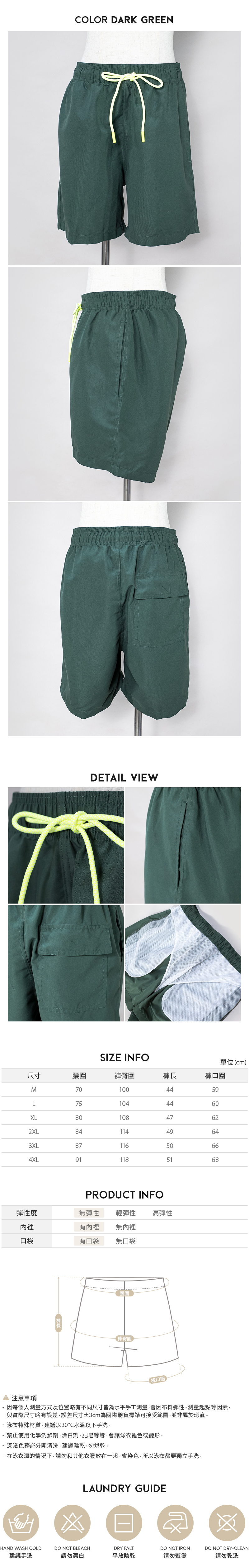 男款墨綠色泳褲穿起來輕鬆舒適,輕鬆打造海灘或泳池的矚目焦點,渡假泡溫泉必備!