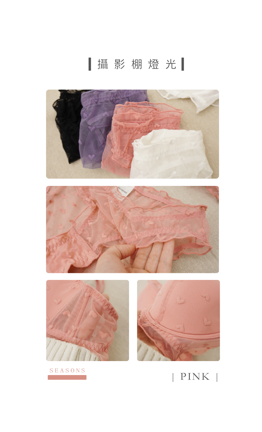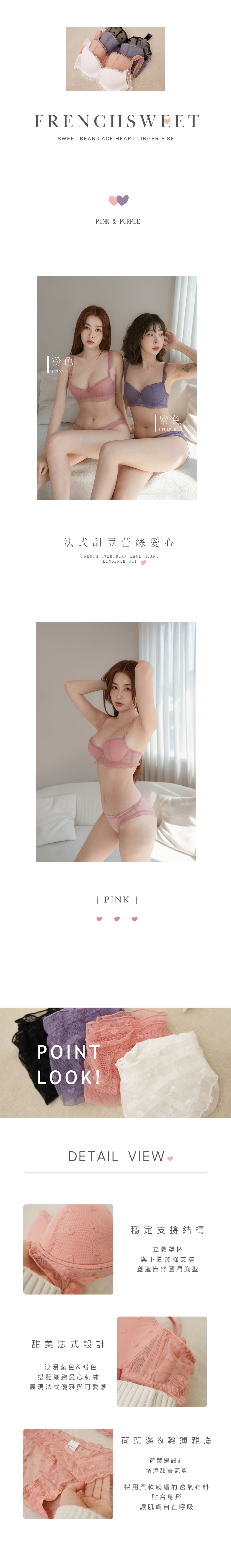 現貨法式甜豆蕾絲愛心內衣褲組 -PJ26 粉色