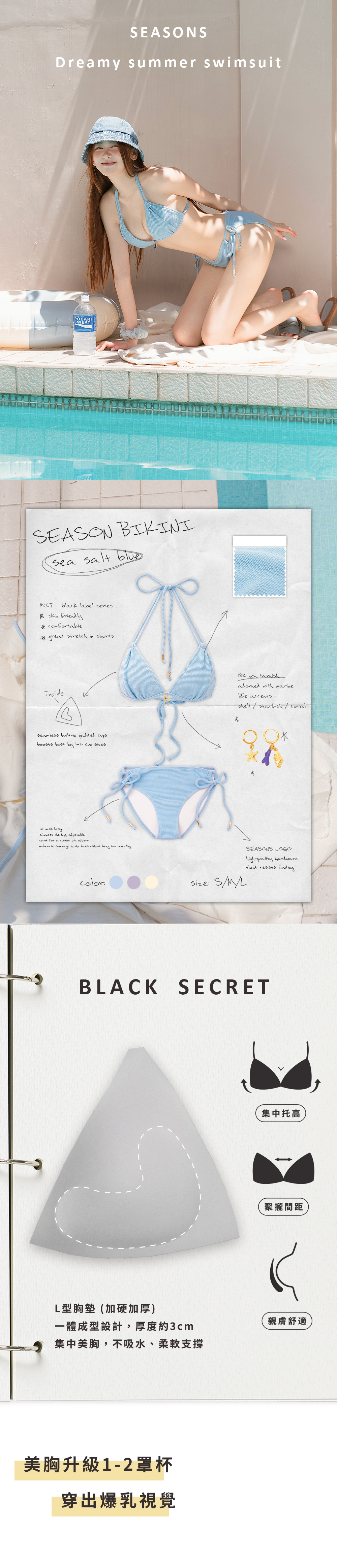 台灣製黑標 人魚雙肩帶美胸比基尼泳衣-海鹽藍 -013