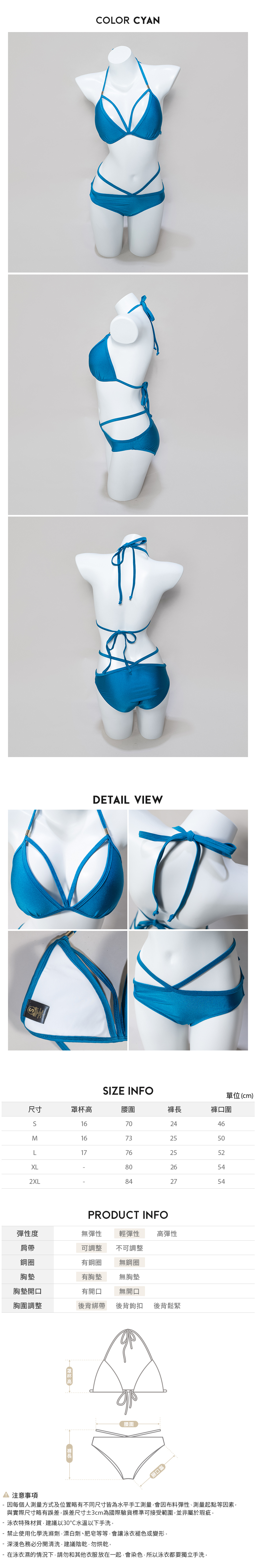 性感線條美胸比基尼,搭配金屬質感裝飾,MIT台灣製的好品質,親膚舒適面料彈性佳,美波神器L型一體成型胸墊,不吸水、柔軟支撐,集中美胸,罩杯UPUP升級有感!輕鬆打造迷人的優雅穿著,海邊渡假、泡溫泉必備!