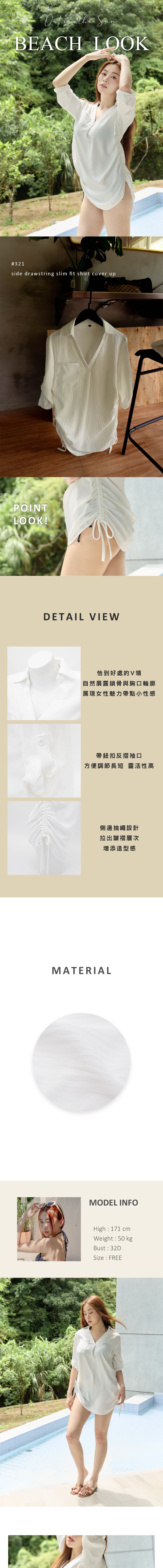 現貨 側抽繩襯衫顯瘦罩衫-321