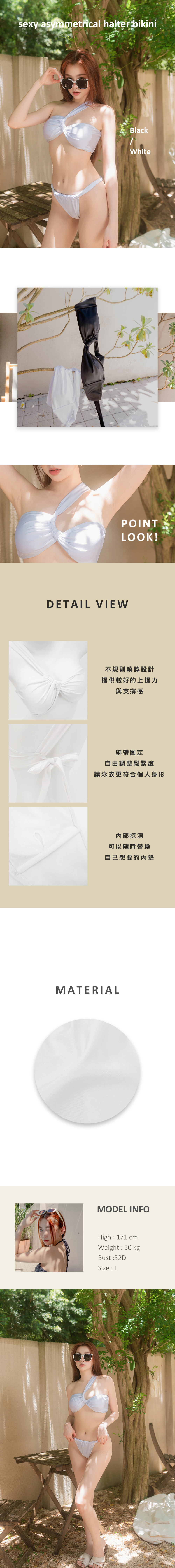 現貨 白色歐美性感不規則繞脖比基尼泳衣 -643