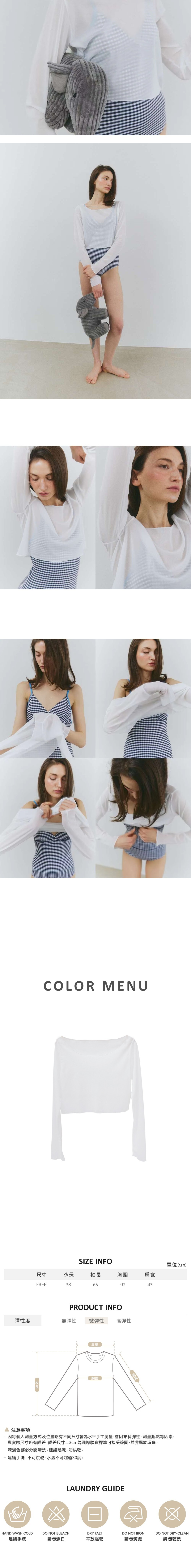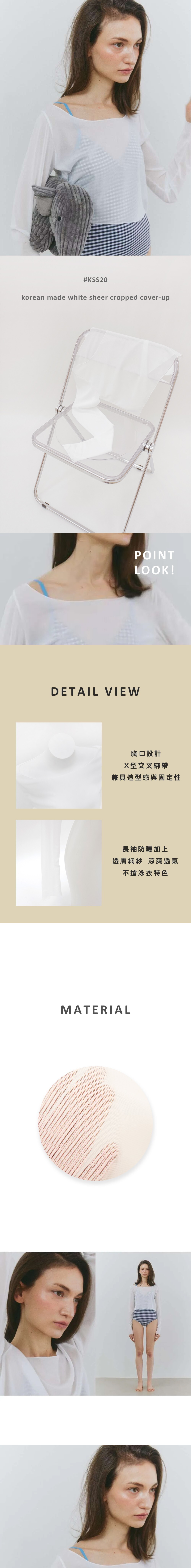 白色透膚設計,隱約勾勒身形,性感中帶著優雅。 短版剪裁,完美修飾比例,輕鬆搭配泳衣、背心或洋裝。不管海邊或泳池都很亮眼。