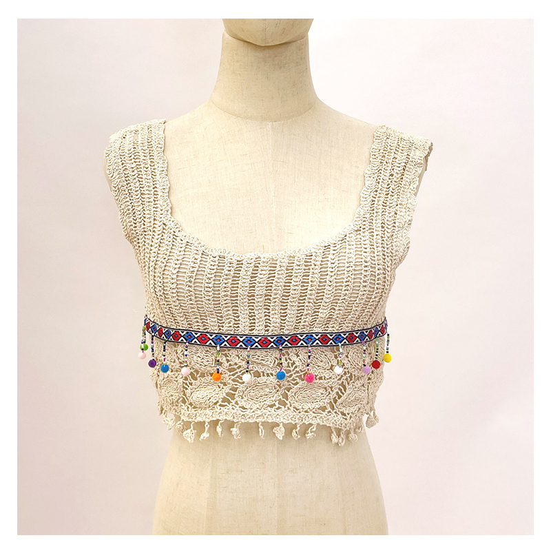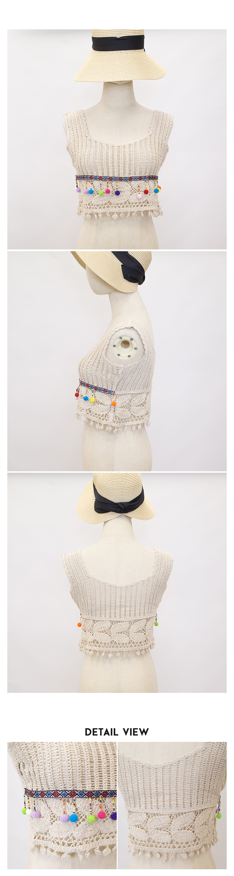 現貨流蘇小彩球波希米亞背心上衣 -523