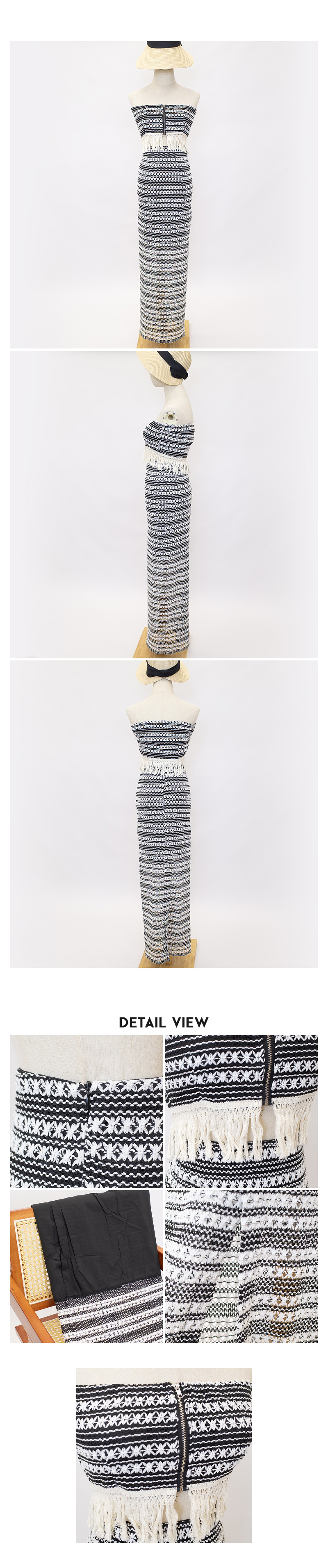 現貨流蘇針織兩件套平口上衣+長裙 -162