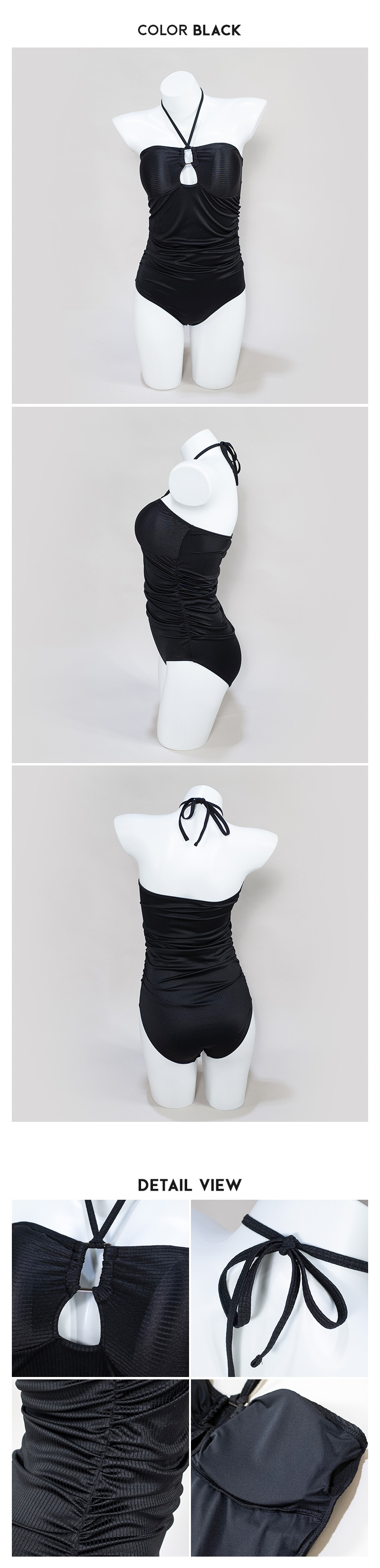 現貨正韓製黑色金屬掛脖連身泳衣 -KSS31